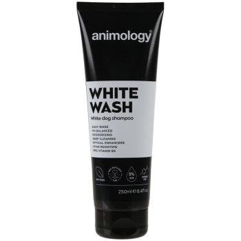 Sampon pentru caini Animology White Wash 250 ml formulat cu potentiatori optici incorporati, care vor ajuta sa lase blana cainelui alb stralucitor, clatire usoara.